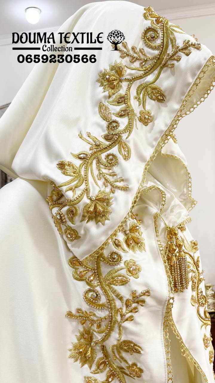 Bernous pour mariées travailler avec chaara doré , du perlage hor et doubler avec du soie fini par sfifa doré au bordures