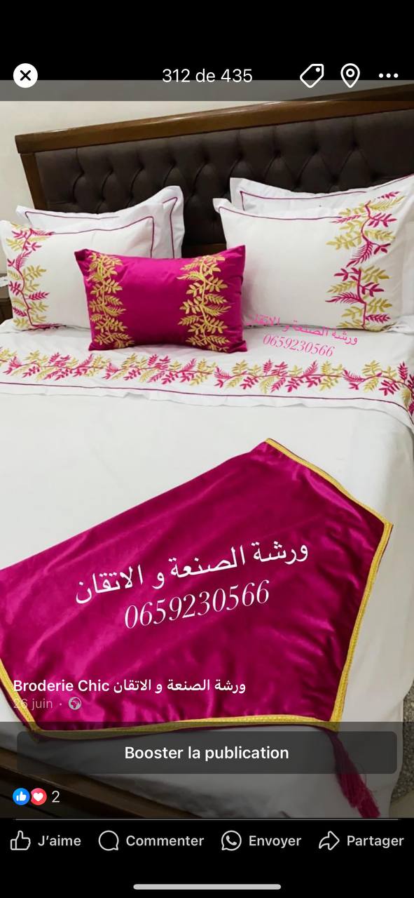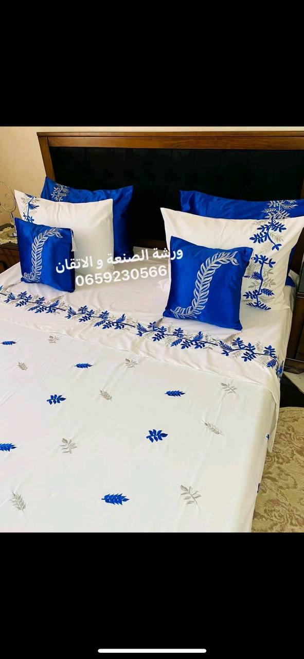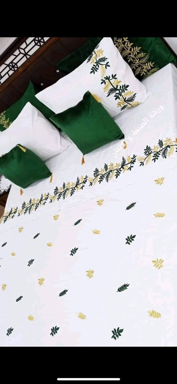 Chora ghorzet hseb modèrne composée de 7 pièces drap plat 260*240 deux taies d’oreilles 70*50 deux taies d’oreilles 60*60 deux