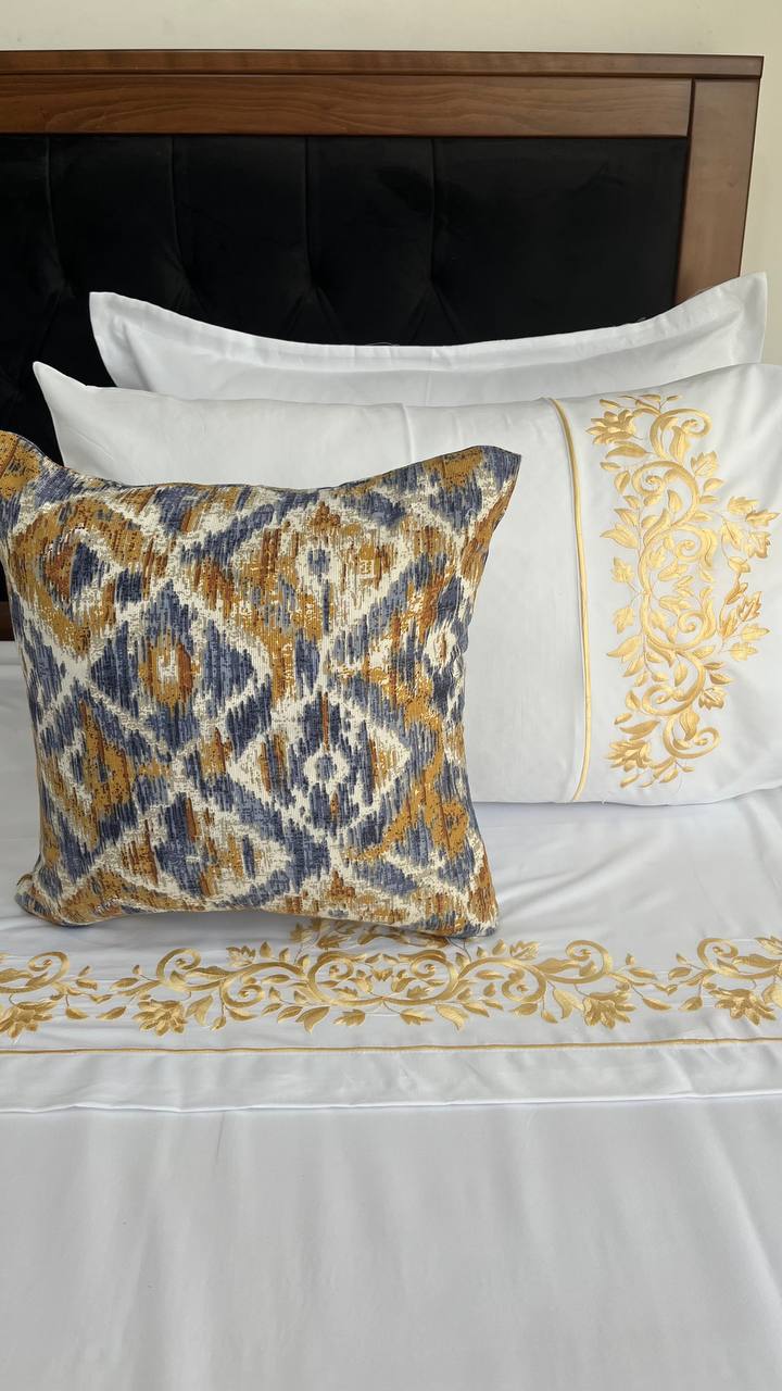 Chora ghorzet hseb modèrne composée de 7 pièces drap plat 260*240 deux taies d’oreilles 70*50 deux taies d’oreilles 60*60 deux